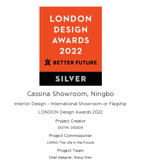 寧波第六空間中興商場Cassina 展廳從全球數(shù)以萬計的高水平設(shè)計作品中脫穎而出,斬獲2022年倫敦設(shè)計大獎——國際展銷廳或旗艦店銀獎。